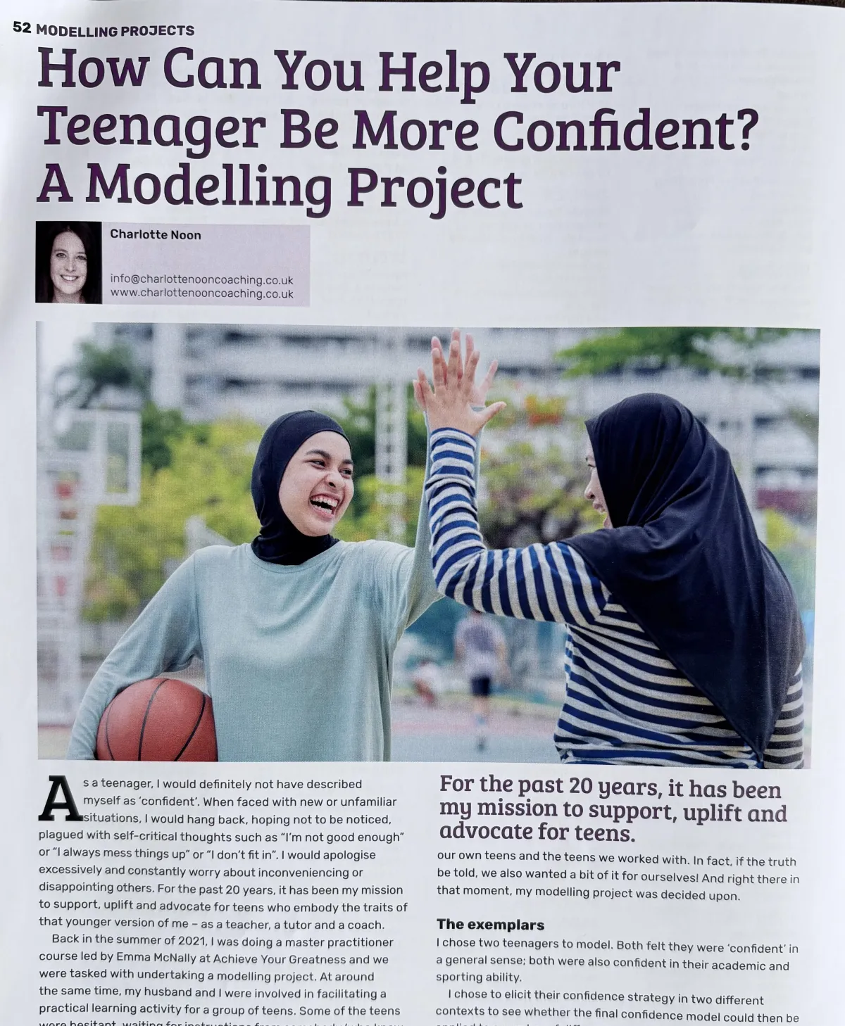 Back in the summer of 2021, I was doing a Master Practitioner course led by Emma McNally at Achieve Your Greatness and we were tasked with undertaking a modelling project. At around the same time, my husband and I were involved in facilitating a practical learning activity for a group of teens. Some of the teens were hesitant, waiting for instructions from somebody “who knew the answers” (as we would have done at their age). However, there was a small minority who bounded head-first into the situation - full of enthusiasm and excitement - automatically voicing their opinions and proposing ideas, whilst remaining sensitive to others’ needs. They seemed to have an unwavering faith in their skills, knowledge and competence and when they encountered challenges, they simply changed their approach. These teenagers literally oozed confidence.